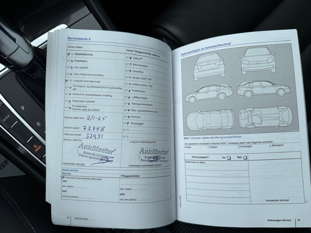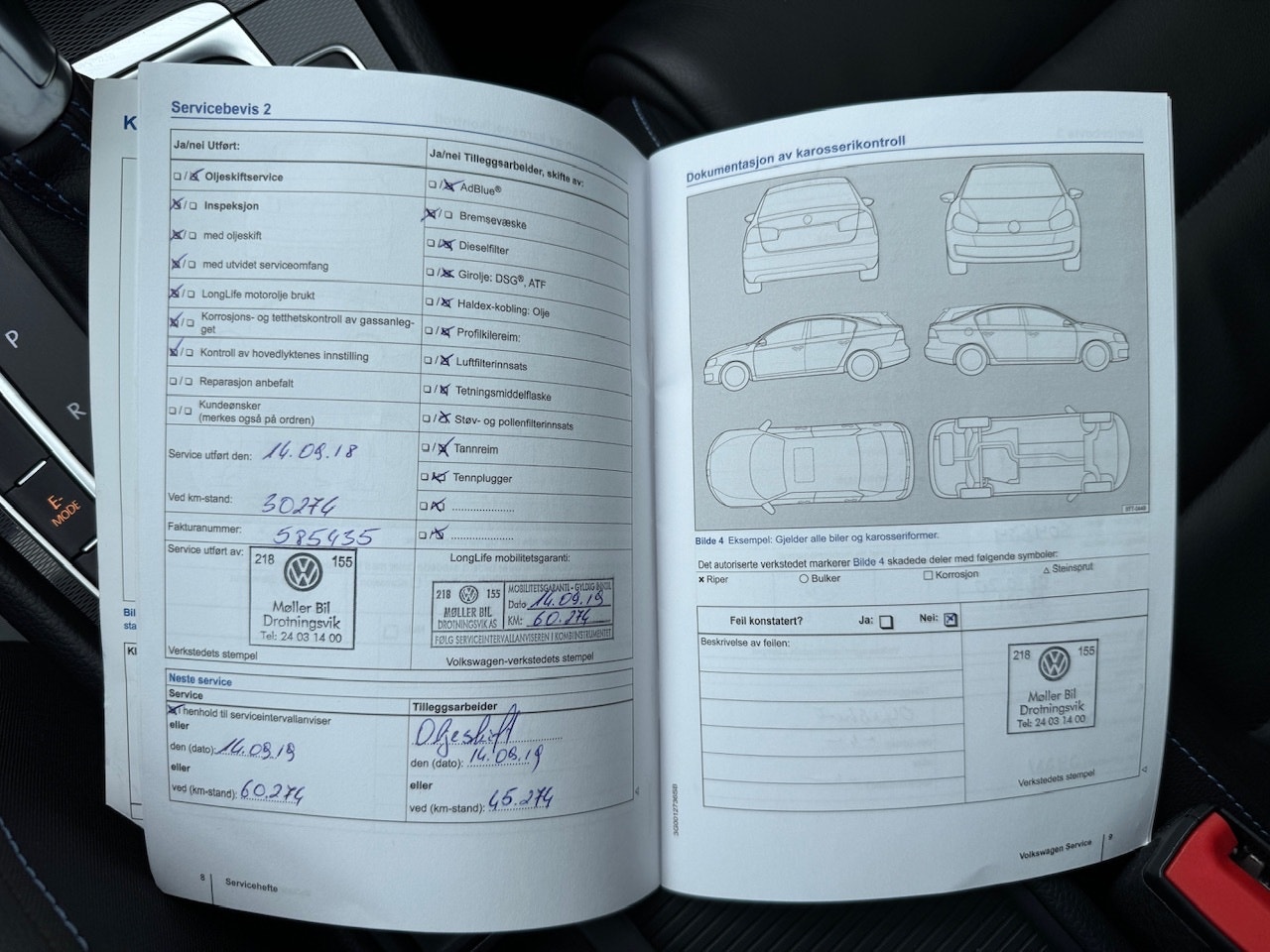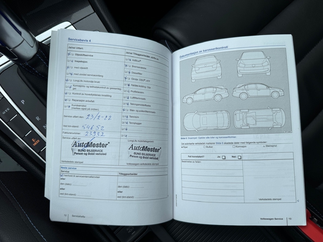 Service og vedlikehold er stemplet i hefte, ikke komplett.